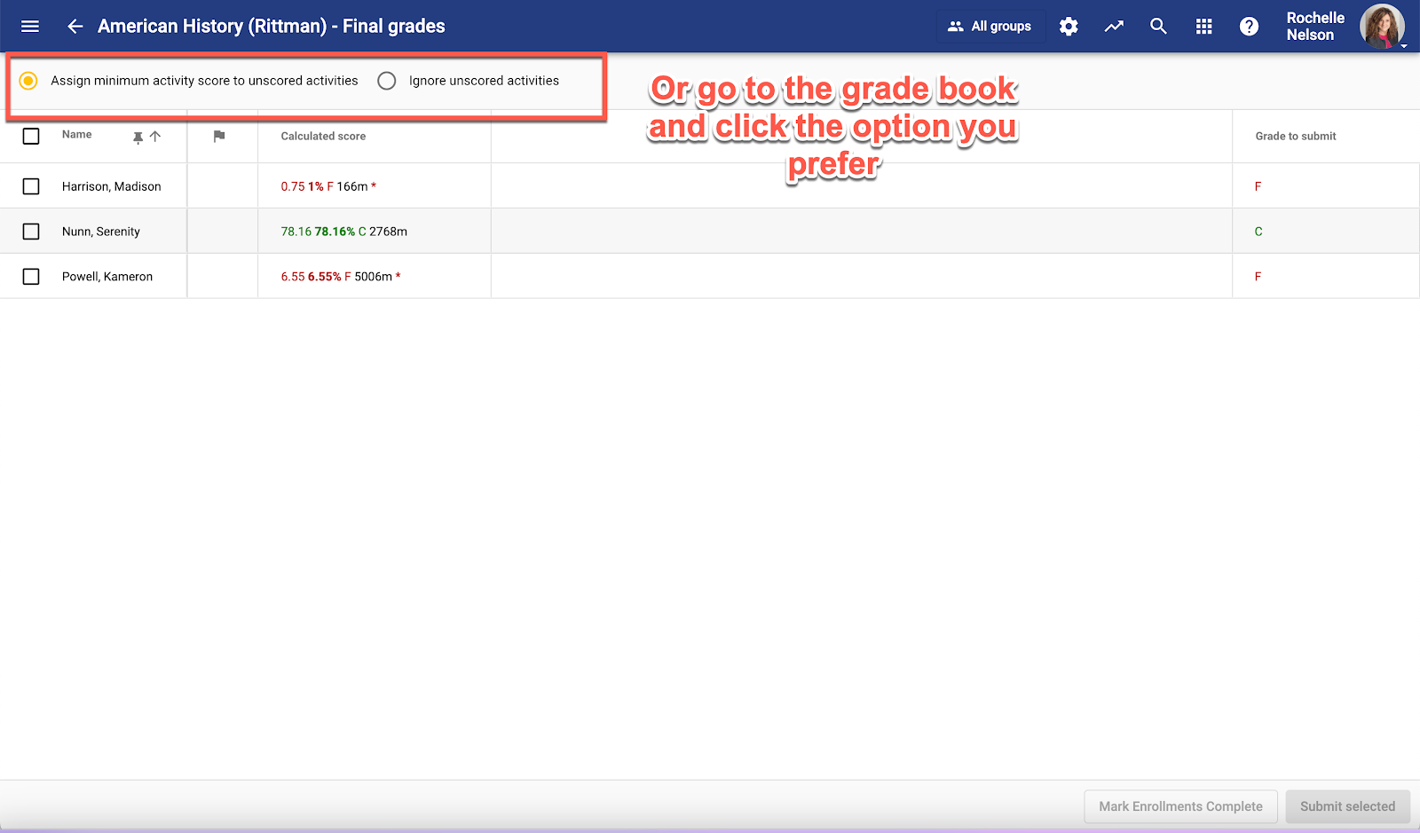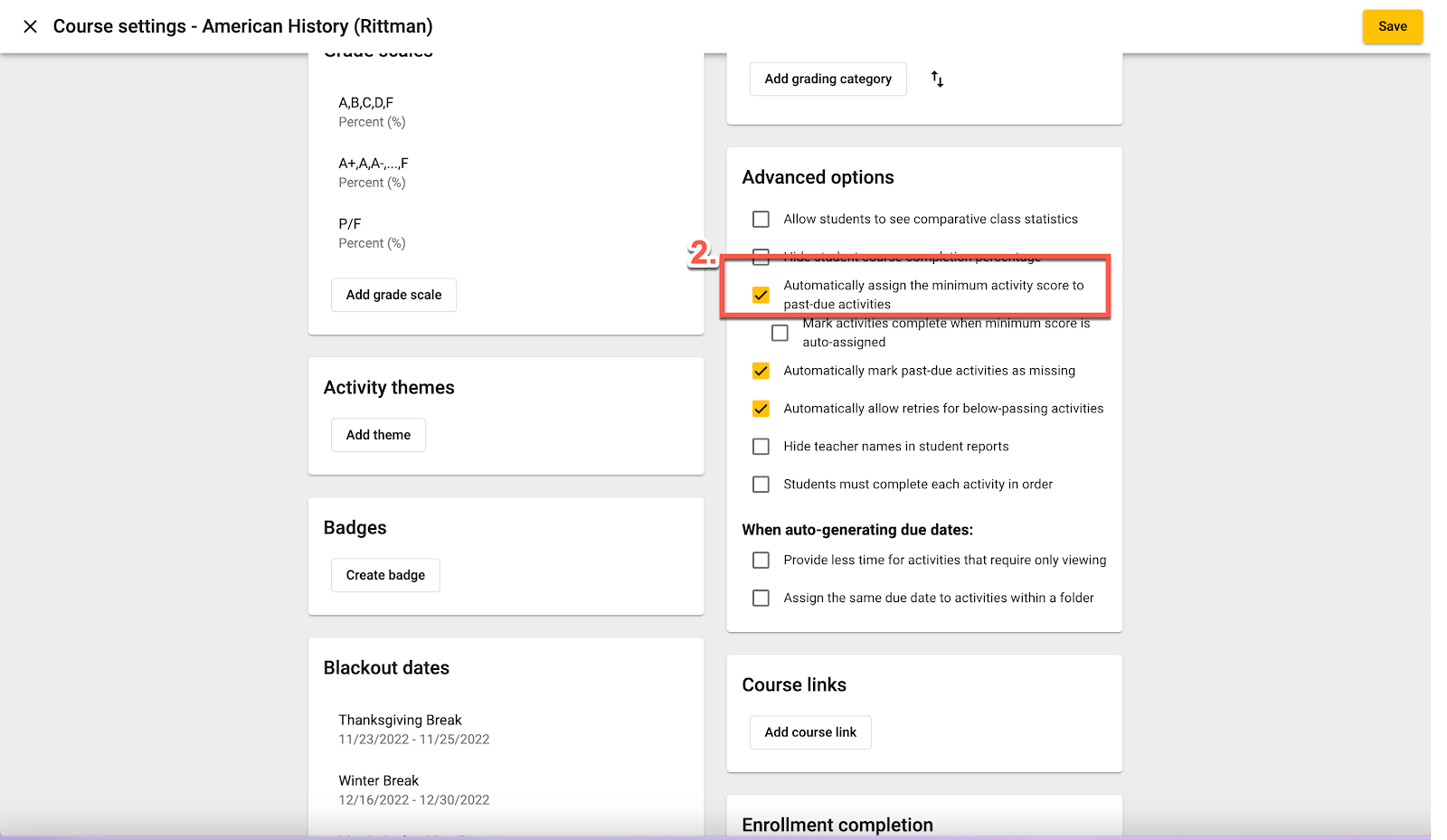 Scroll down to “Automatically assign the minimum score to past-due activities”