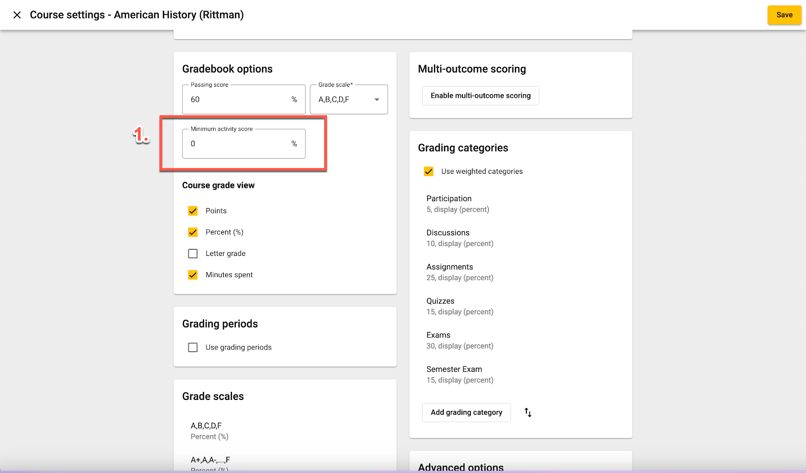 Ensure that the Minimum score is “0”. (All courses are set up for the minimum score to be (0).